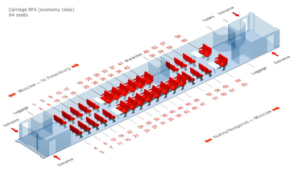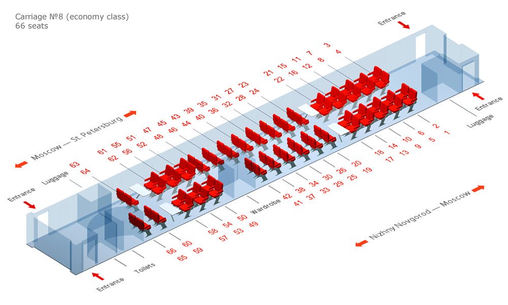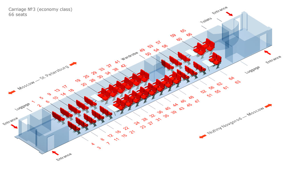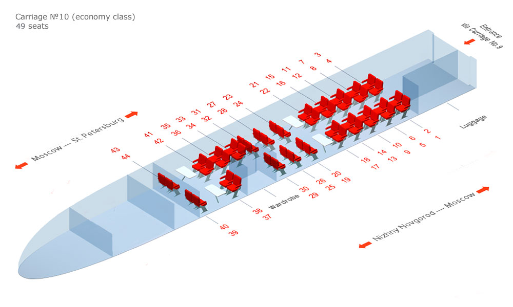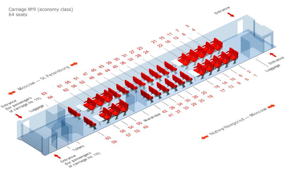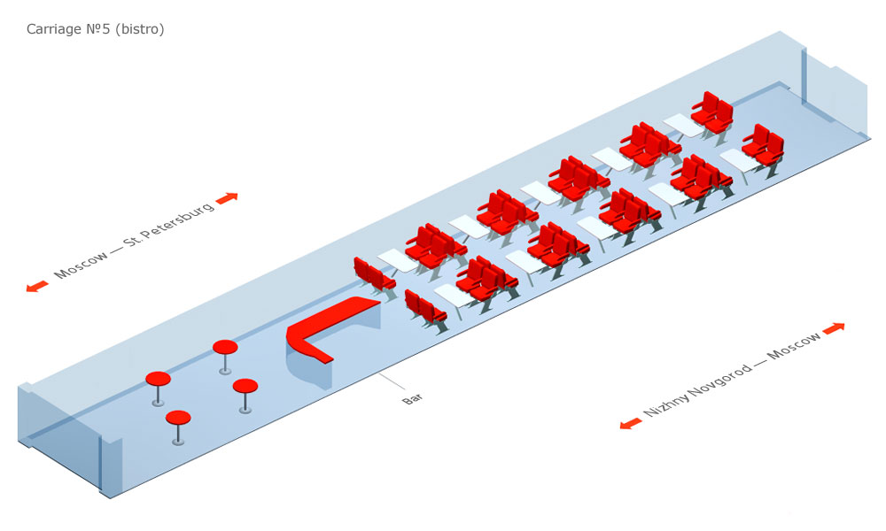 De plus, le train Sapsan est très pratique, car les gares de départ et d'arrivée sont dans le centre-ville, donc vous économisez de l'argent en trajet, et du temps, et vous serez alors en mesure de vous rendre en métro dans n'importe quelle partie de la ville ou vous désirez aller.